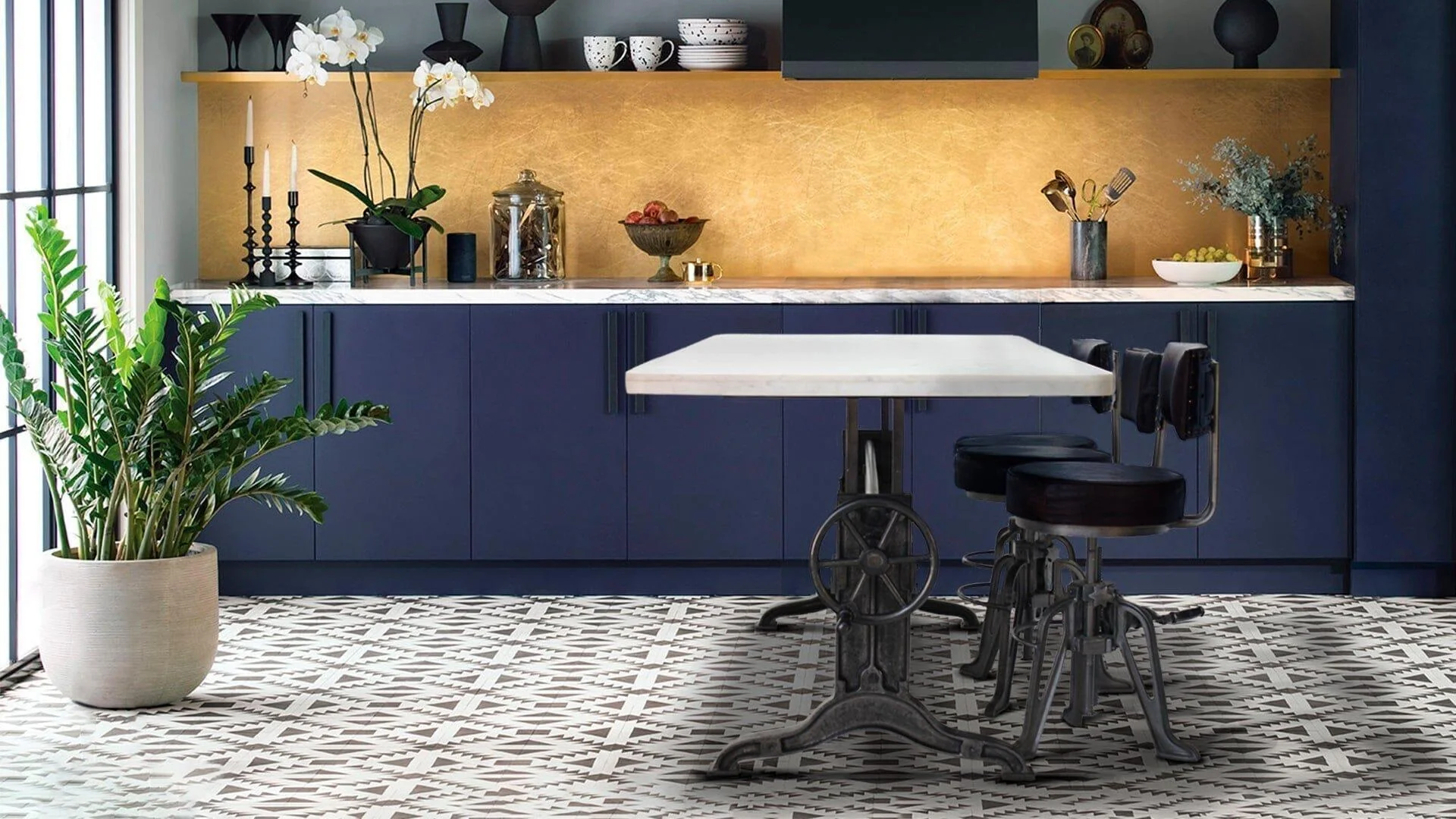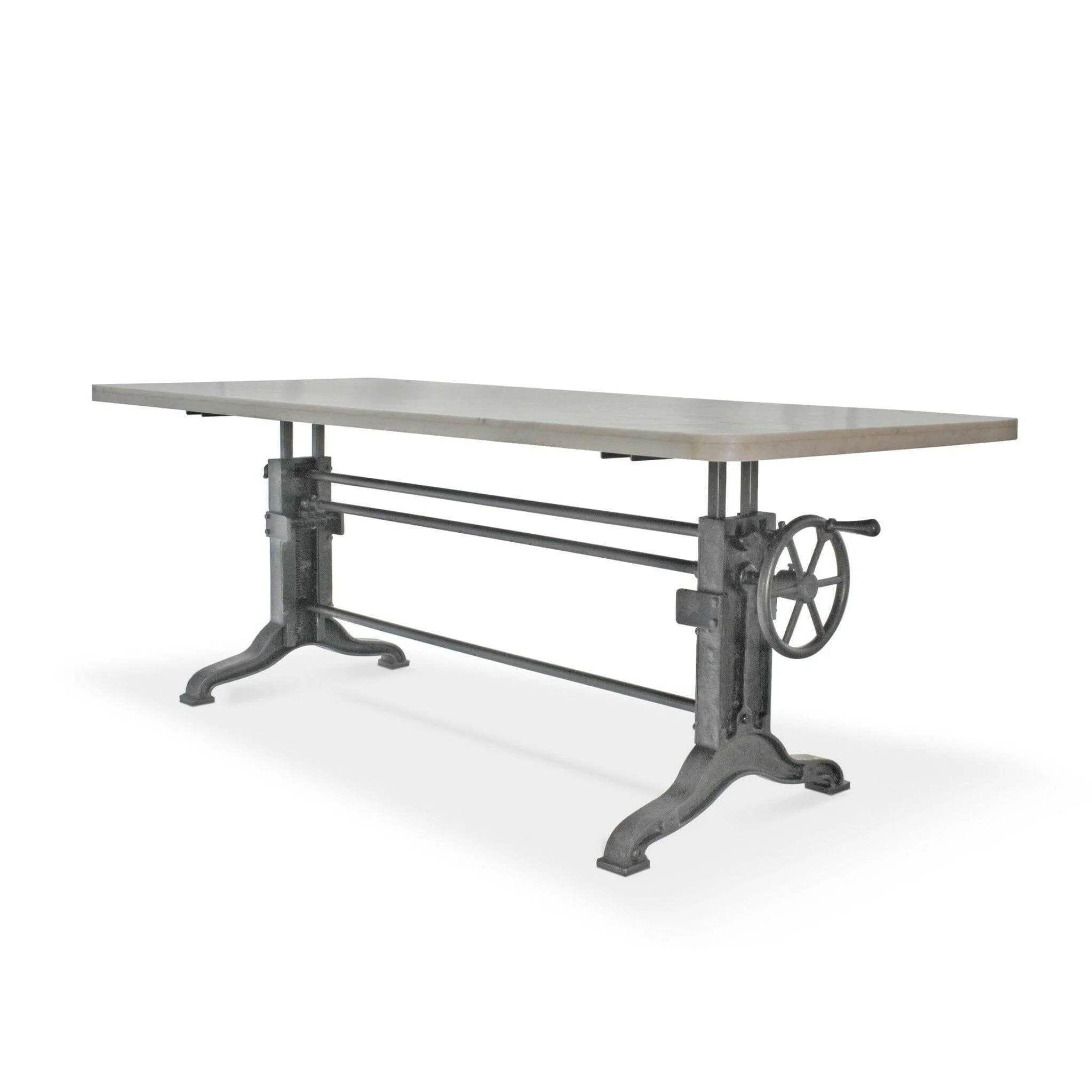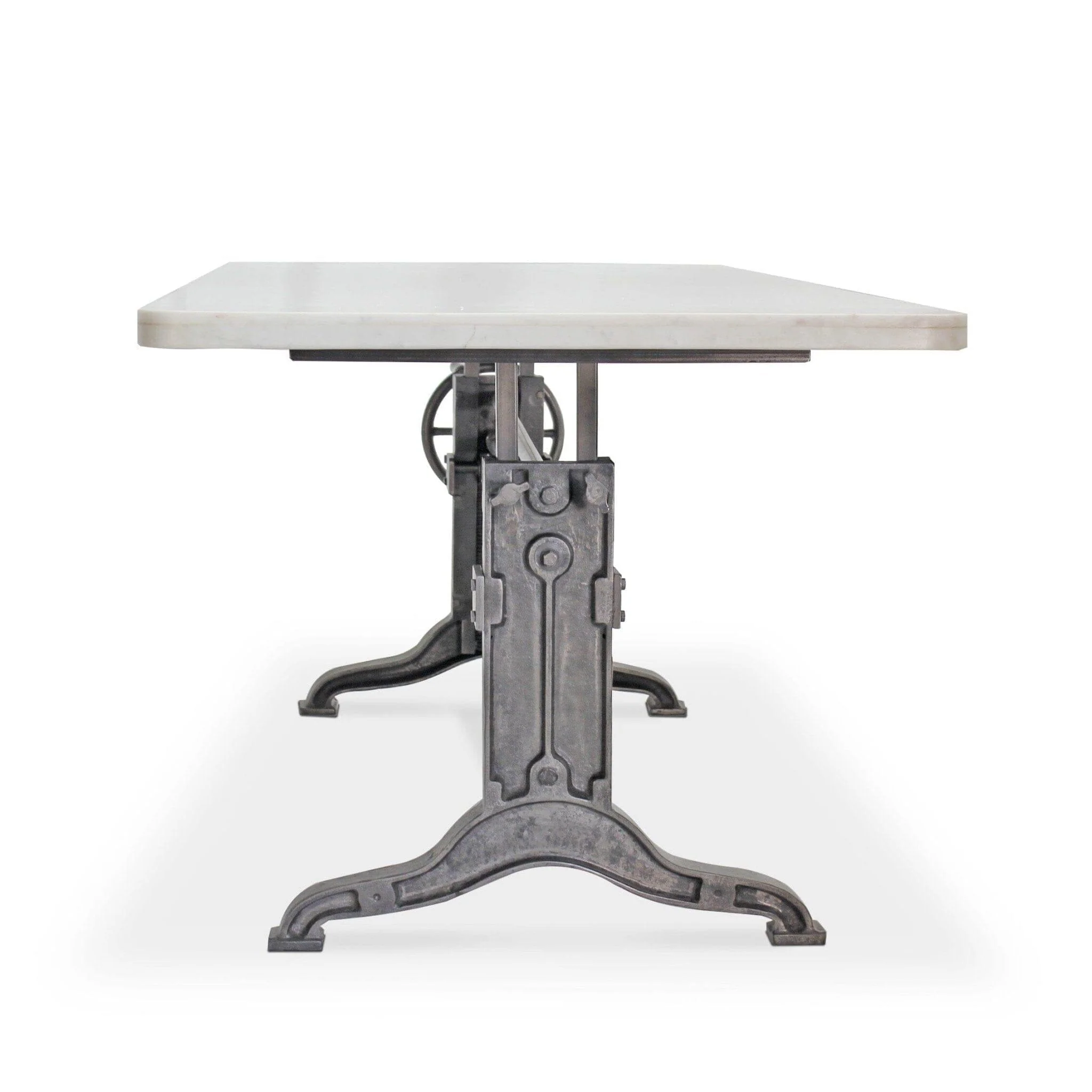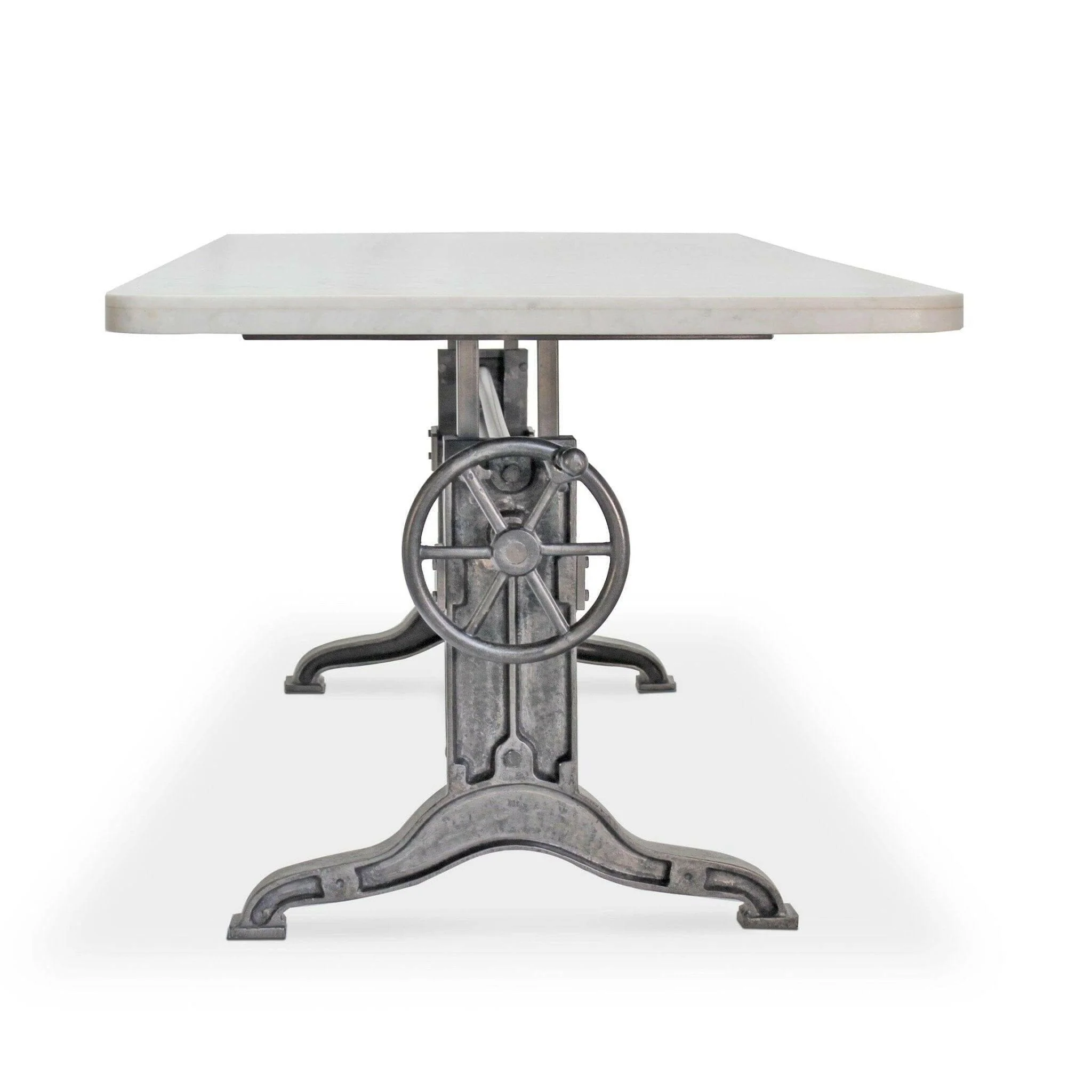 Frederick Adjustable Height Dining Table – Cast Iron – White Marble Top