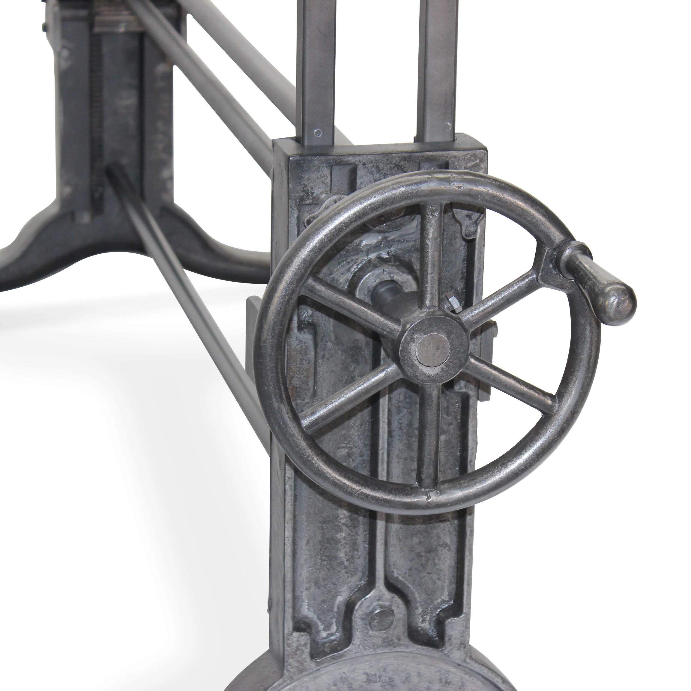 Inspired by the newspaper boon of the early 1800’s, the Frederic table design is a unique mix of American Revival (curves of the base feet) and industrial machinery of that era (cast iron and crank wheel). This design takes its name from the Frederic Post Company located in Chicago, IL. The Frederick Post Company was a manufacturing leader of drafting tables and related factory workbenches during this period of US history.