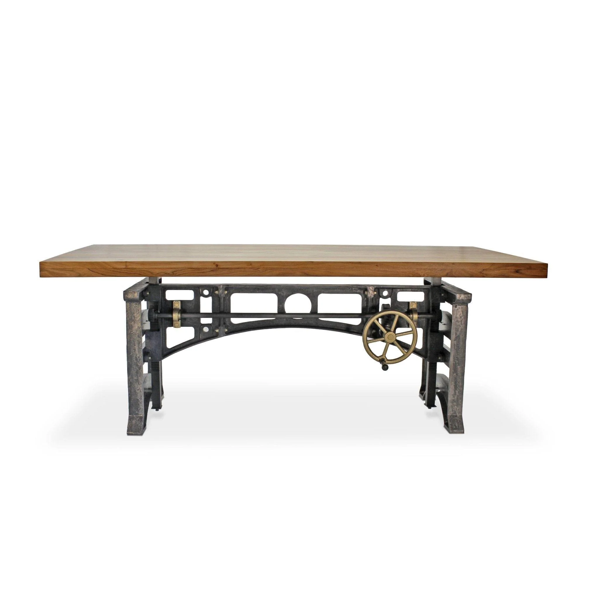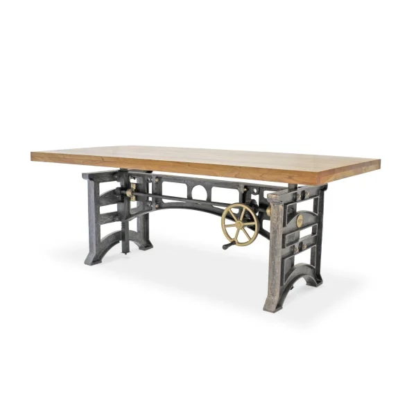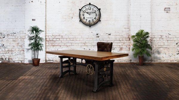 The hefty solid cast-iron base of the Harvester industrial-style executive desk sits sturdily under a solid acacia hardwood top that measures 80 x 40 inches with a 2.5-inch-thick frame. With a handy adjustable-height range of 11 inches, it’s easy to crank this table to the height you desire – stand or sit.
