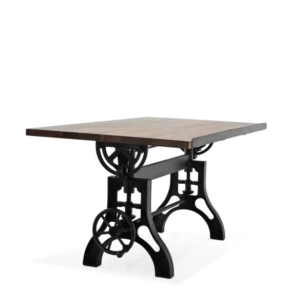 Character and function are the hallmarks of this impressive drafting desk. Rugged yet elegant, the KNOX base is made of cast iron, enhancing its vintage industrial theme. The functioning mechanical gears and handwheel allow adjustment of the top’s height from 31 inches up to 41 inches. The solid hardwood full-tilt top, with a removable iron lip, gives you even more options to fit your precise needs. You will have no problem finding a position to maximize efficiency and comfort, whether seated or standing.
