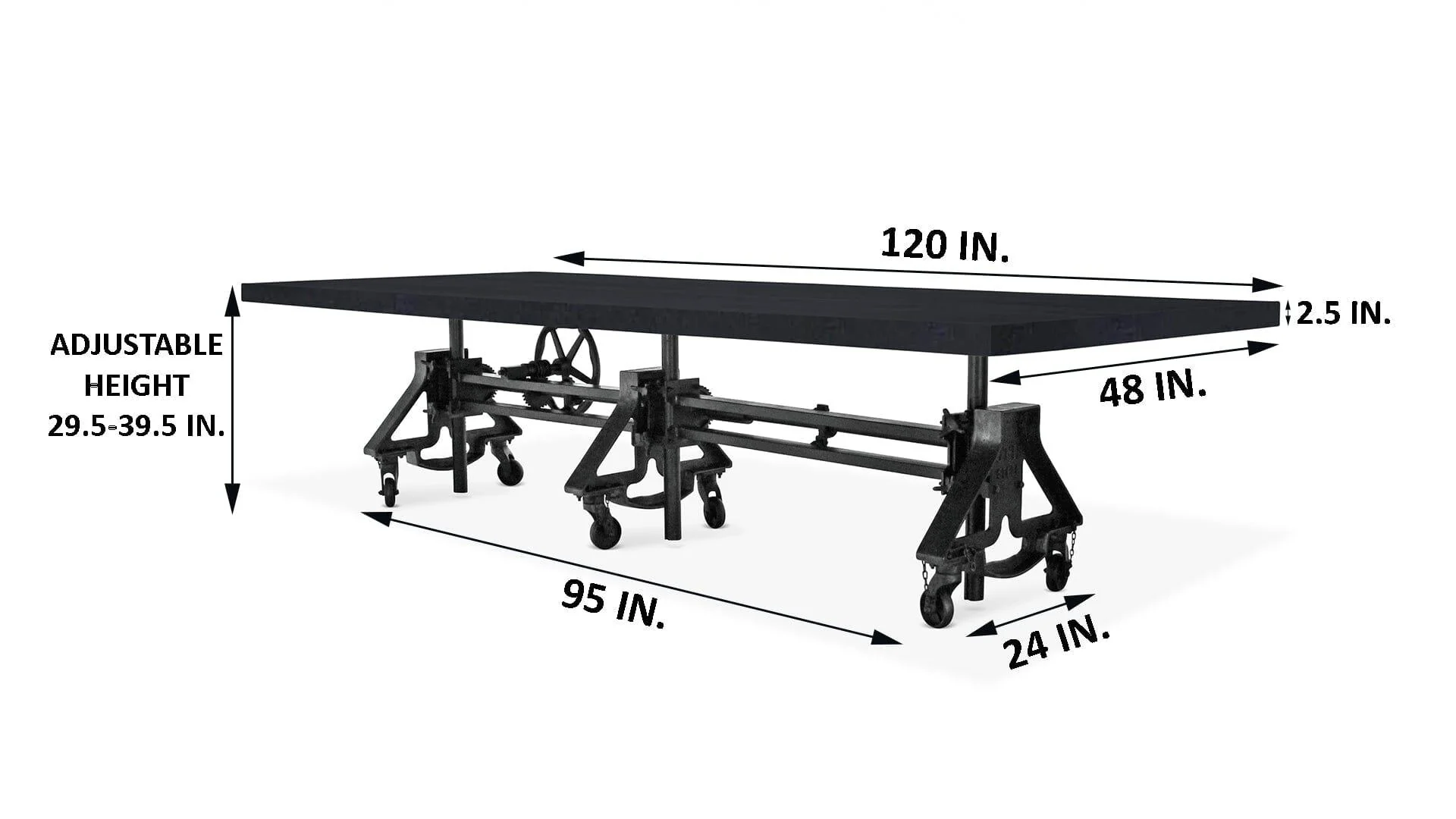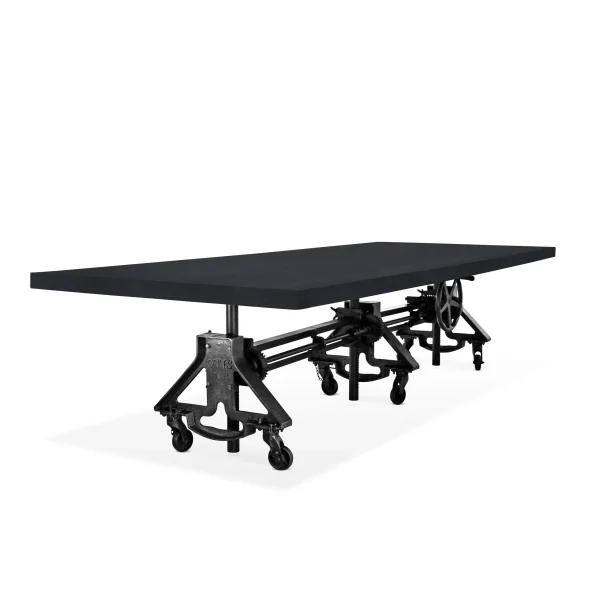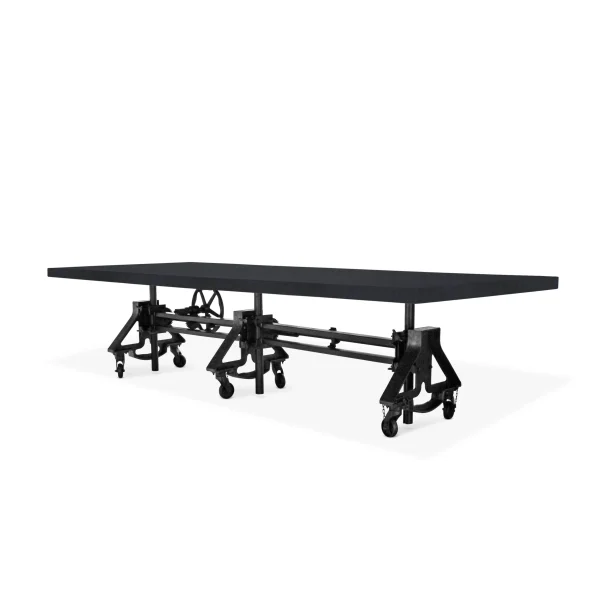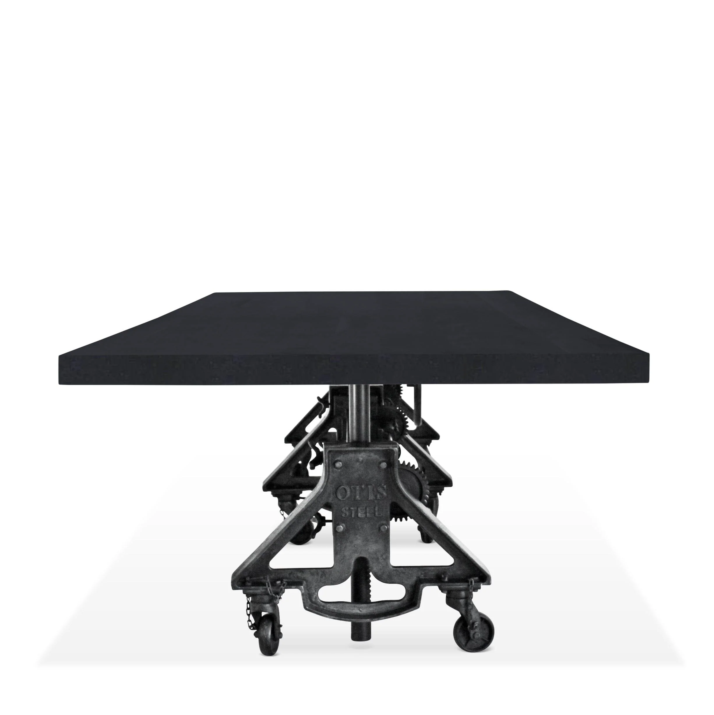Otis Steel Communal Table – Adjustable Iron Base – Casters – Ebony Top